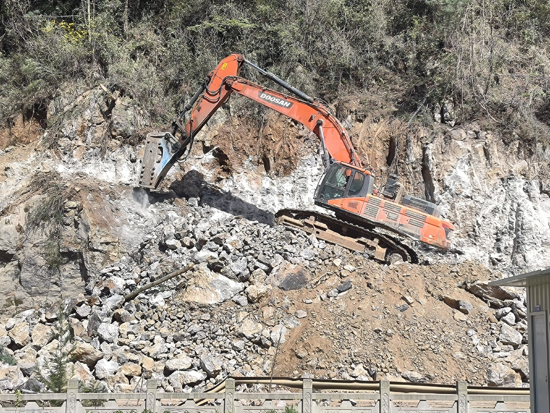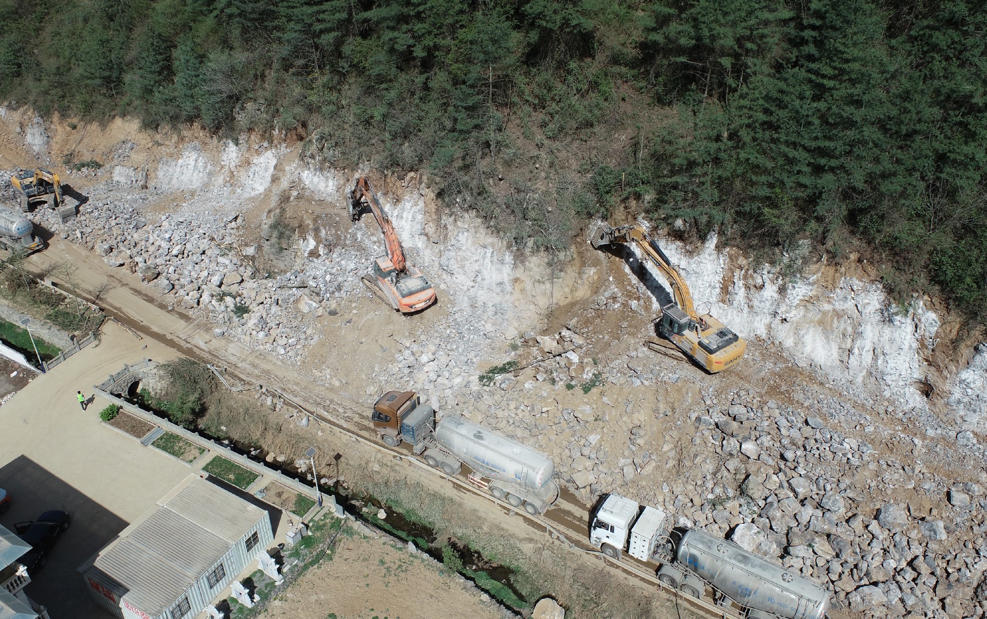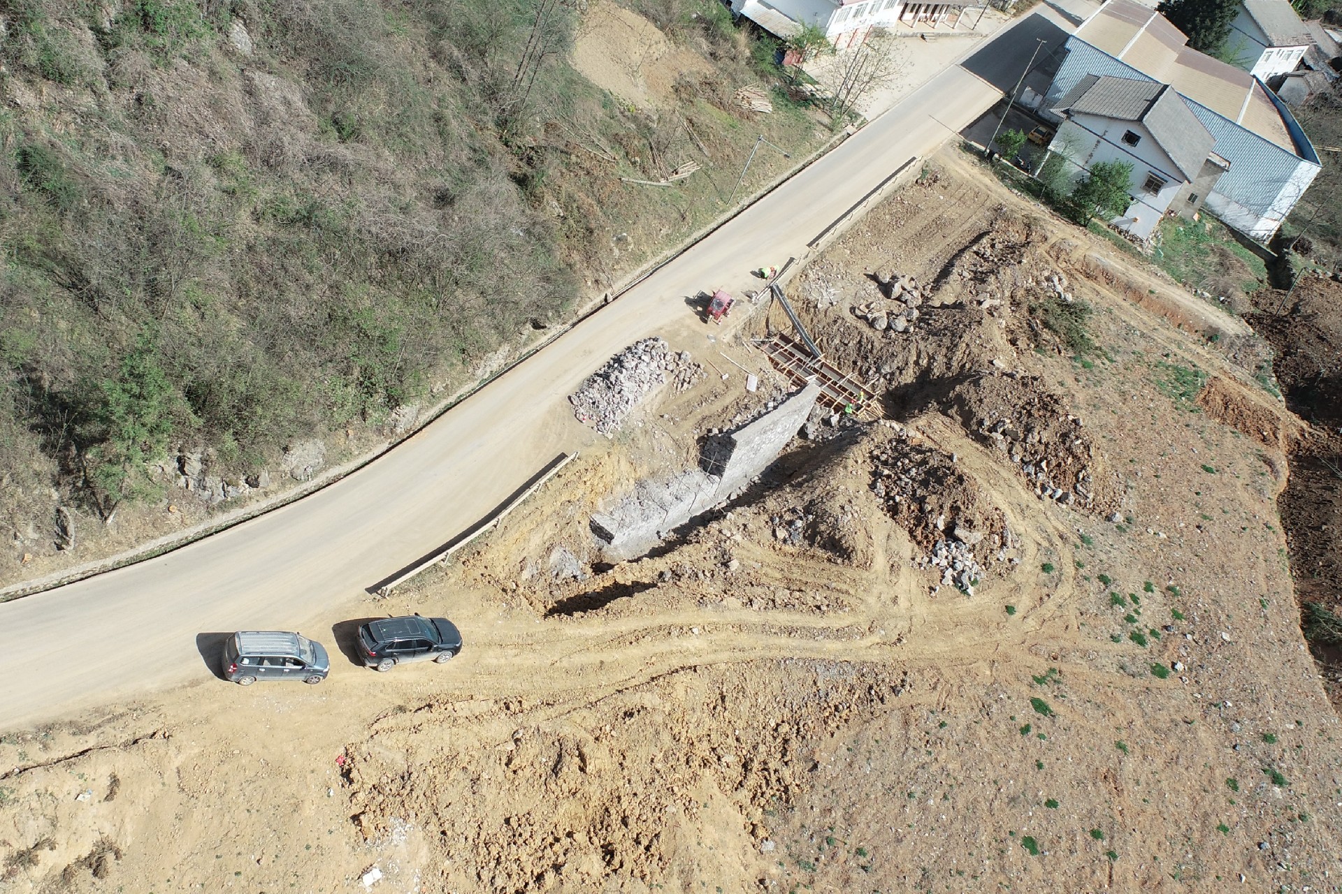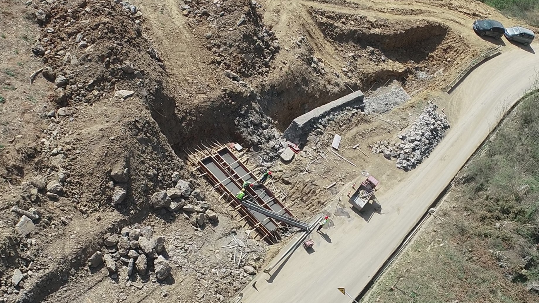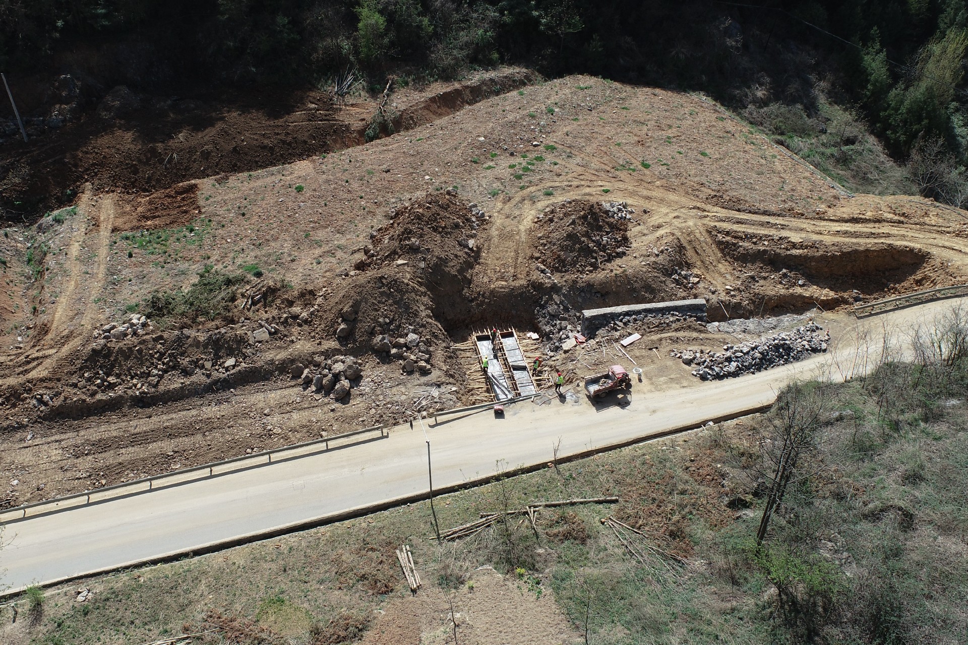 目前正在進行主線路基開挖,完成蓋板涵預制85塊,占總數52%;擋防工程5023方,占總數31%;土石方開挖6.5萬方,占總數12%,利用土石方1.5萬方,占總數11.5%;場鎮段400米右幅底層6cm油面鋪設。